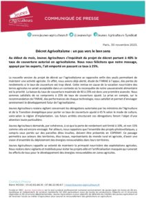 Accueil » Communiqués de presse » Décret Agrivoltaïsme : un pas vers le bon sens » Décret Agrivoltaïsme second acte