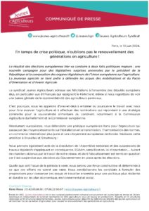 Accueil » Communiqués de presse » En temps de crise politique, n’oublions pas le renouvellement des générations en agriculture ! » 2024.06.10_CP_Résultats-élections-europennes