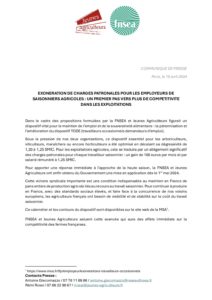 Accueil » Communiqués de presse » Exonération de charges patronales pour les employeurs de saisonniers agricoles : un premier pas vers plus de compétitivité dans les exploitations » CP – TODE