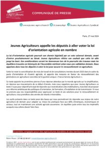 Accueil » Communiqués de presse » Jeunes Agriculteurs appelle les députés à aller voter la loi d’orientation agricole en nombre » Une LOA attendue par le monde agricole