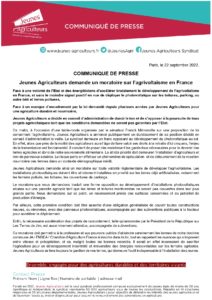 Accueil » Communiqués de presse » Jeunes Agriculteurs demande un moratoire sur l’agrivoltaïsme en France » CP Jeunes Agriculteurs demande un moratoire sur l’agrivoltaïsme en France_page-0001