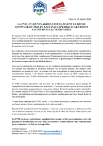 Accueil » Communiqués de presse » La FNPL et JA jugent la baisse annoncée du prix du lait inacceptable et le feront savoir dans les territoires » Capture d’écran 2026-01-15 112942