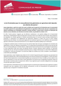 Réaction au txt voté par les députés en commission économique Publié le 13 mai 2024 PARTAGER SURX / TwitterFacebookEmailPin It Continuer la lecture... Navigation de l’article La loi d’orientation pour le renouvellement des générations en agriculture doit répondre aux attentes des jeunes !