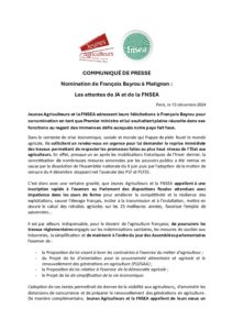 CP JA & FNSEA Nomination Bayrou 13 12 24