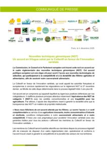 Accueil » Communiqués de presse » Nouvelles techniques génomiques (NGT) : Un accord en trilogue salué par le Collectif en faveur de l’innovation variétale » 20251204 – CP NGT