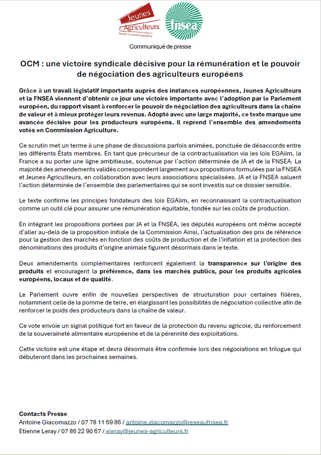 Capture d’écran 2025-10-09 093750 Publié le 9 octobre 2025 PARTAGER SURX / TwitterFacebookEmailPin It Continuer la lecture... Navigation de l’article OCM : une victoire syndicale décisive pour la rémunération et le pouvoir de négociation des agriculteurs européens