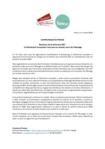 Accueil » Communiqués de presse » Révision de la directive IED : le Parlement européen n’est pas au rendez-vous de l’élevage » CP – Directive IED – 13.03.24