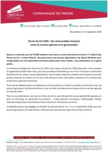 Accueil » Communiqués de presse » Terres de Jim 2025 : des retrouvailles réussies entre le monde agricole et le grand public » CP TDJ 14092025