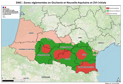 La sixième zone réglementée (ZR6) avait été instaurée suite à la détection d’un foyer dans un élevage de l’Ariège le 9 décembre, et élargie suite à la détection d’autres foyers dans les jours suivants.