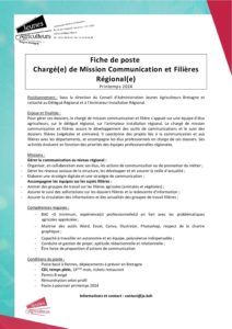 Accueil » Jeunes Agriculteurs Bretagne recrute un(e) Chargé(e) de Mission Communication et Filières Régional(e) pour le Printemps 2024 » Fiche de poste Chargé(e) de mission communication – 2024
