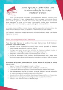 Accueil » Jeunes Agriculteurs Centre-Val de Loire recrute un.e chargé.e de missions installation & foncier » Recrutement AIR 2021