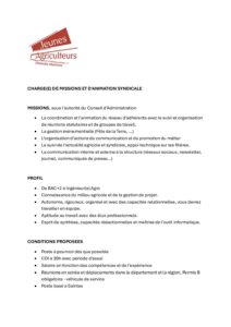 Accueil » Jeunes Agriculteurs Charente Maritime recrute un(e) chargé(e) de missions et d’animation syndicale » fiche de poste charge de missions