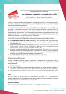 Accueil » Jeunes Agriculteurs du Jura recrute un(e) animateur(trice) syndical et communication » Offre emploi animateur syndical et communictaion JA 39