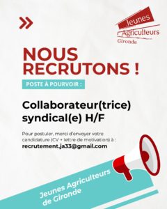 offre_collab_2026 Publié le 28 octobre 2025 PARTAGER SURX / TwitterFacebookEmailPin It Continuer la lecture... Navigation de l’article Jeunes Agriculteurs Gironde recrute un(e) collaborateur(trice) syndical(e)