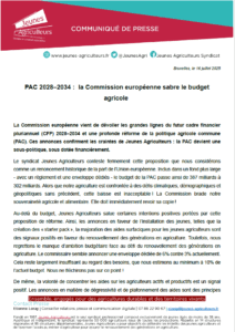 La Commission européenne a publié ce mardi sa stratégie pour le renouvellement des générations, signe d’une prise de conscience de l’urgence démographique ! Un cap est fixé. Jeunes Agriculteurs salue les annonces fortes du commissaire Christophe Hansen, mais cette ambition ne peut être atteinte avec la baisse drastique du prochain budget de la PAC, proposée par la Commission cet été, et en l’absence de mesures contraignantes.