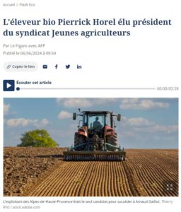 Accueil » L’éleveur bio Pierrick Horel élu président du syndicat Jeunes agriculteurs » Capture d’écran 2024-06-12 103004