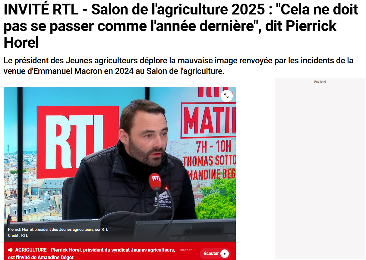 Accueil » INVITÉ RTL – Salon de l’agriculture 2025 : « Cela ne doit pas se passer comme l’année dernière », dit Pierrick Horel » Capture d’écran 2025-07-31 171819